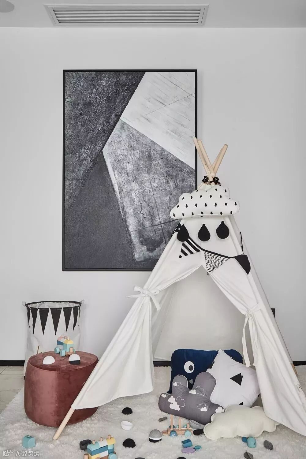 所以,在不改变空间色彩、布局、结构的前提下,用艺术挂画增加空间层次,绝对是聪明快速的方式。