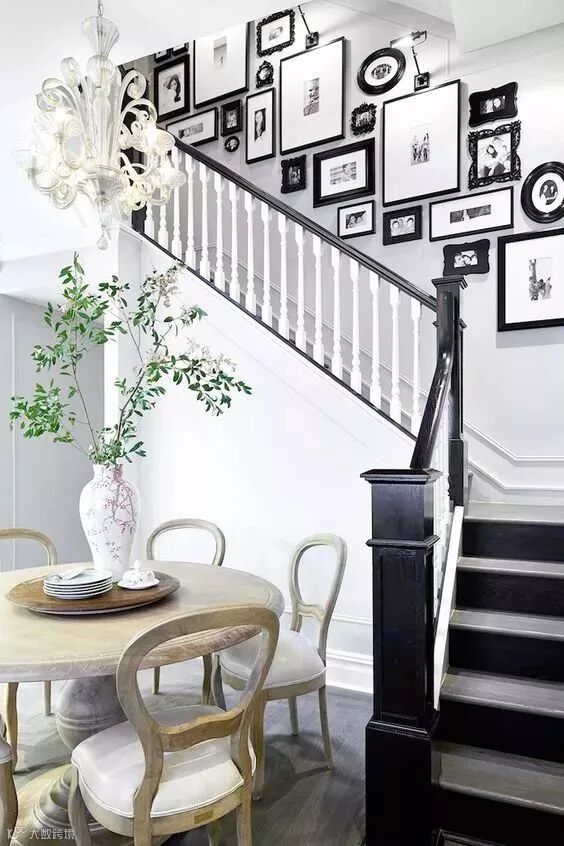 7、建筑结构线挂法: 沿着楼梯的走向布置装饰画。