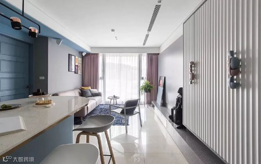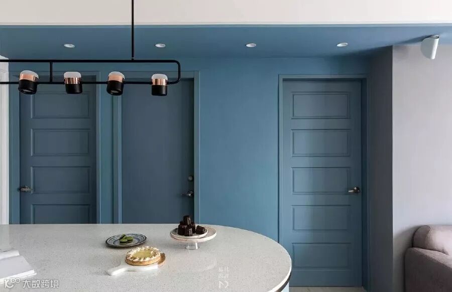 青色质感高级,色彩恰到好处,在这样的空间里,大概会忘记时间。
