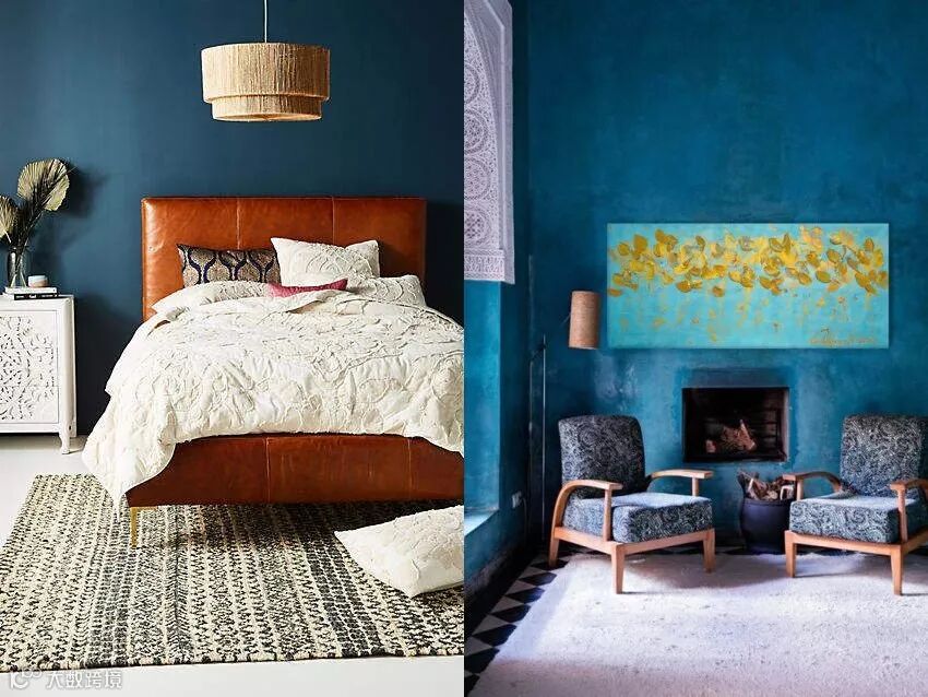 而深青色沉静辽阔,有利于思考和睡眠,比如书房和卧室。