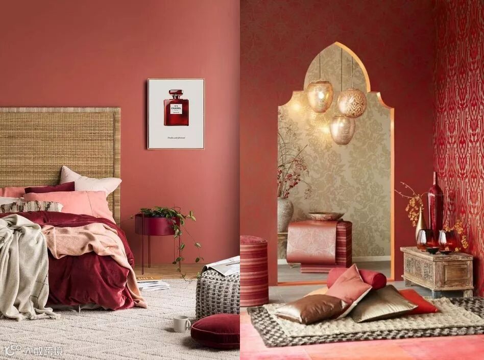 在室内设计中,赤色的运用也犹如点睛之笔,大块复古红的加入,传递出热情与活力、青春与优雅的态度。