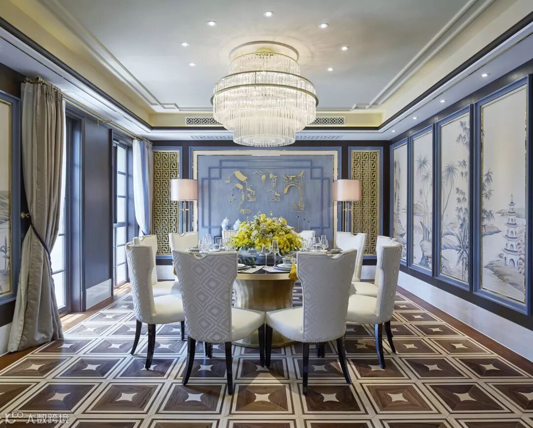饭厅墙面饰以传统元素图案,扑面而来的古朴气质。