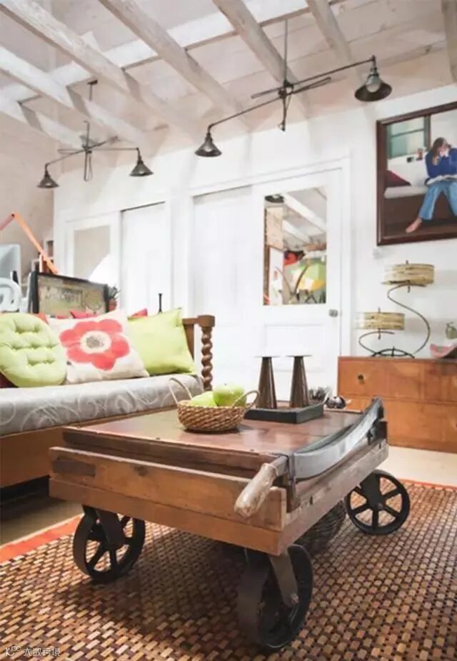 旧切纸机变成了咖啡桌,古朴又有质感。