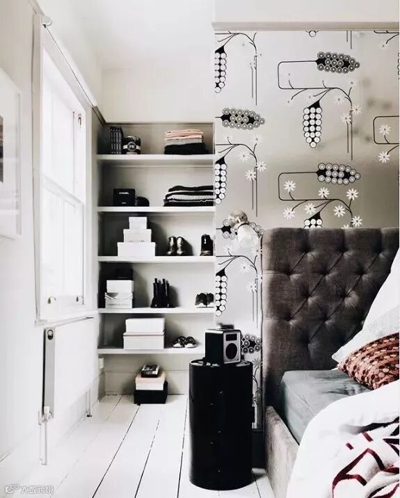 最值得一提的是,Kate家在卧室,又用家具、鞋子来呼应其他空间的深浅色的风格。给人一种不落窠臼的新鲜感。