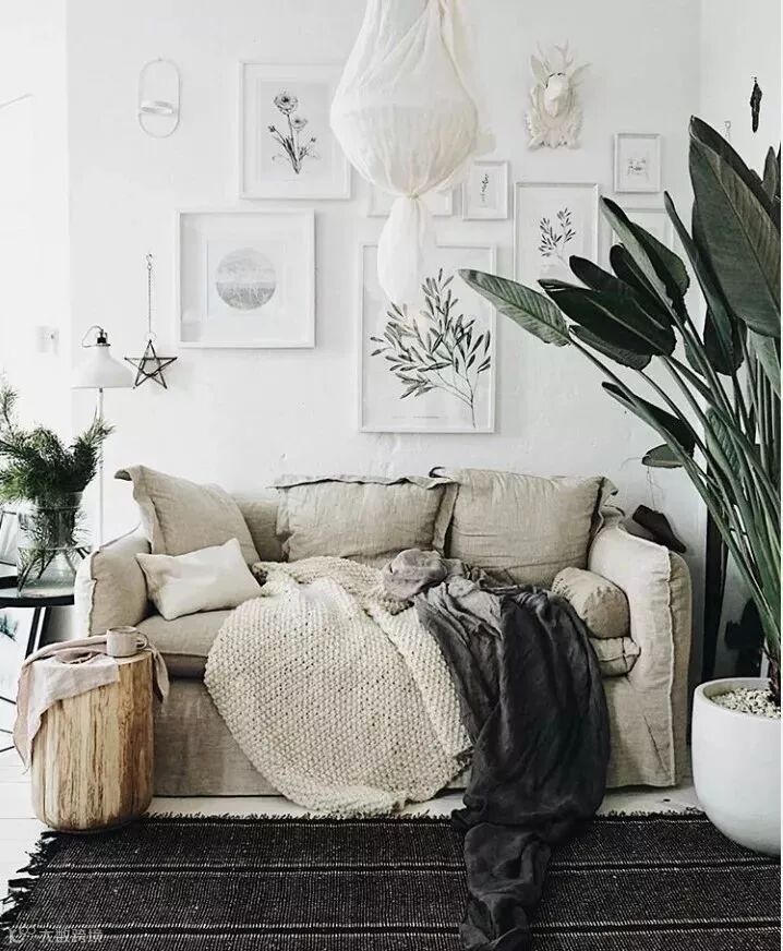 家里的硬装真是很简单,大白墙、大白顶,即使如此,在软装的加持下,整个空间都充满了设计感。