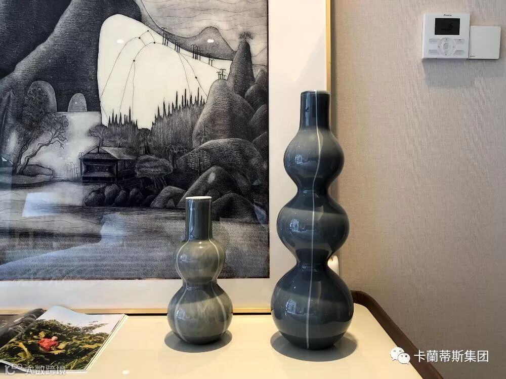 以墙为画板,软装装饰灵动游弋其中,延续了河海的默契,再搭配别具一格的瓷器摆件和后现代艺术画,犹如城堡般神秘,面朝窗外的无尽景色,此唱彼和。