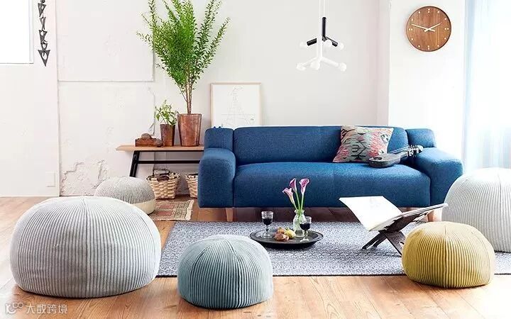 蓝色给人一种安详沉稳的感觉,给极简的家中增添一抹蓝色,不需要多余的装饰,仅仅只需要不同明度的蓝,都能让整个画面看起来就相当有艺术感。
