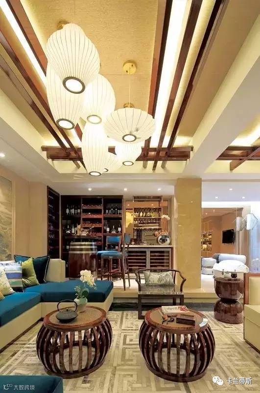 最后回到我们的传统家居之中式茶几。要是您的客厅需要偏中式一点的风格的话,我建议在客厅摆放两张中式小茶几,加上顶上的灯笼吊灯,使整个家充满中式古典韵味,更加雅致。