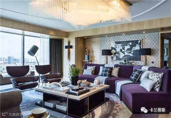 紫色的沙发体现出一种高贵典雅之感,但是这样的一个客厅布置储物空间较少,因此在中间放一张储物空间较多的现代茶几,不至于显得客厅杂乱无章。