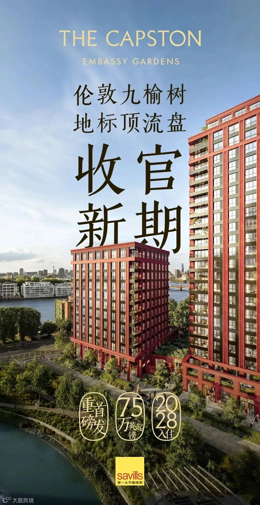 首发!伦敦九榆树爆盘回归,绝版新期河景雅宅£75万起|The Capston