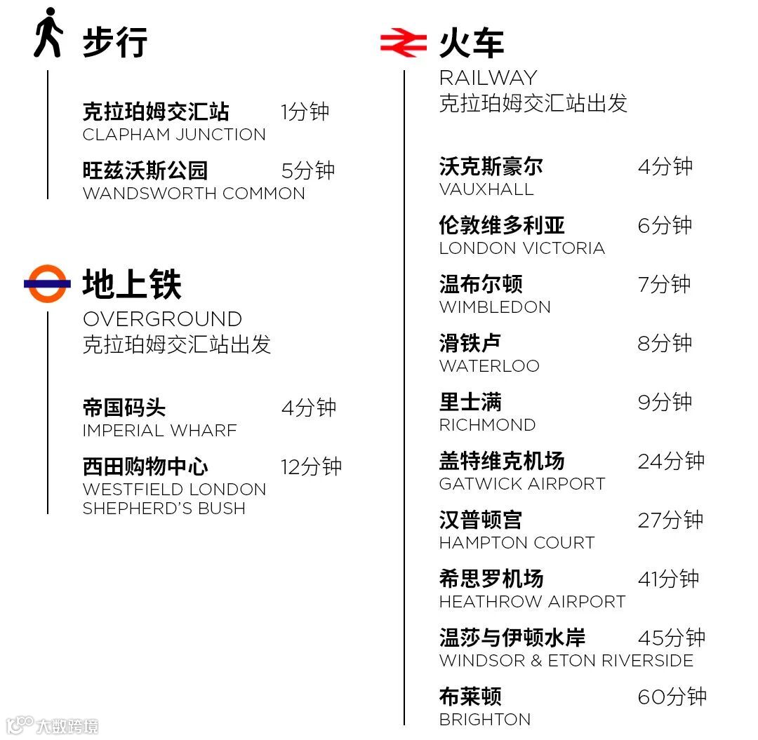 更棒的是,作为全欧洲最繁忙的火车站之一,从克拉珀姆交汇站Clapham Junction还可以便捷前往伦敦以外地区,包括布莱顿、温莎、伊顿等在内的网红打卡胜地都可以在1小时内抵达,无形中更令本项目的出行优势再上一层楼。