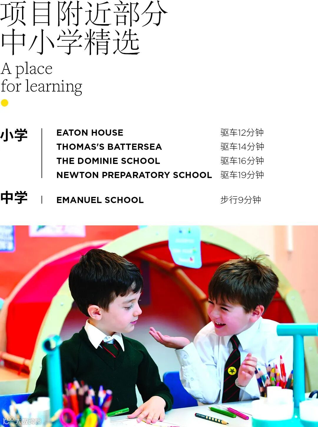中小学教育方面,克拉珀姆所在的旺兹沃斯,已经连续多年被英国教育部评为伦敦10大最佳市政区。该区域内有100多所小学,其中获英国教育标准局Ofsted评价「卓越Oustanding」的比例位列伦敦第五;而在项目方圆2英里范围内,评级「卓越Outstanding」的中学就有6所!