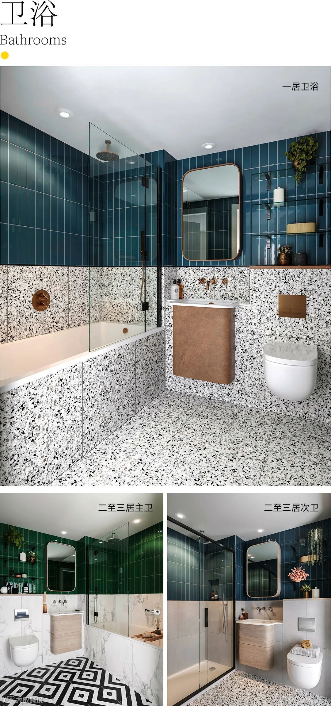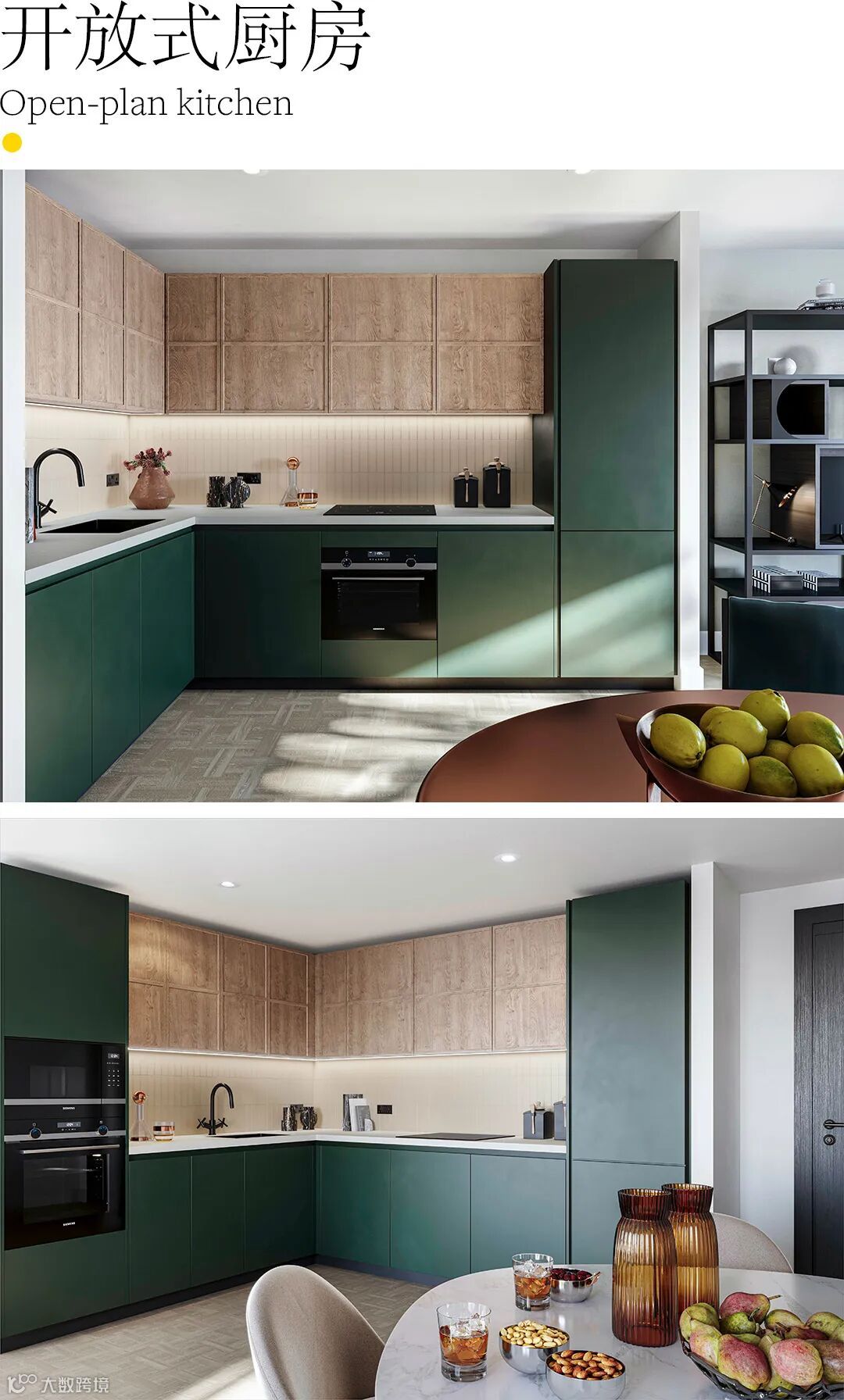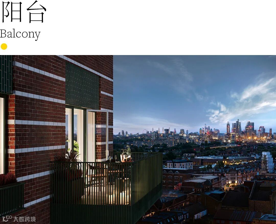从蓝绿色表面与橡木质地的铺陈、铜质金属与黑色配件的细节点缀,到全套西门子厨房电器、地暖、嵌入式衣橱等等,无一不蕴含着室内设计师和开发商对「家」的情感和深入思考。所有公寓都带有阳台,加上合理的采光与通风设计,更为One Clapham Junction的日常起居增添几缕明媚。