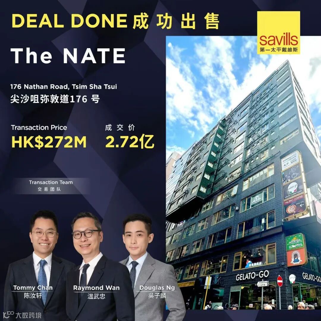 国际房地产顾问第一太平戴维斯成功促成尖沙咀THE NATE全幢物业的交易,作价2.72亿港元。物业地下至四楼为零售基座,而五楼至十二楼则为共居式住宅。物业位处弥敦道与山林道交界,地段优越,人流畅旺,商业价值显著。