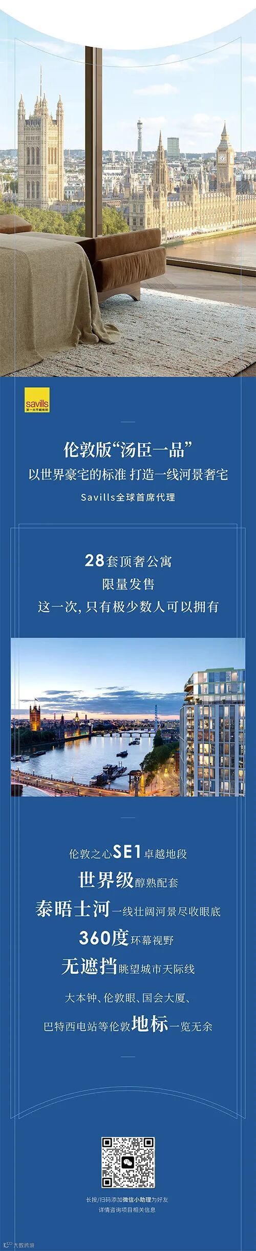 臻稀之作全球独家|伦敦泰晤士河畔360° 滨水奢宅,无遮挡俯瞰大本钟/伦敦眼等多处世界地标 第一太平戴维斯香港及澳门