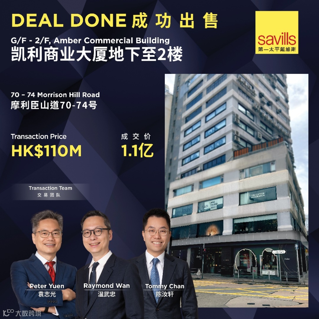 国际房地产顾问第一太平戴维斯成功促成铜锣湾摩利臣山道70-74号凯利商业大厦地下至2楼交易。该物业的总建筑面积约为21,702平方尺,作价1.1亿港元。物业为铜锣湾罕有大面积商铺,具备三面单边及宽阔铺面的独特优势,正对跑马地马场及主要十字路口,周边人流及车流密集,商业价值非常显著。