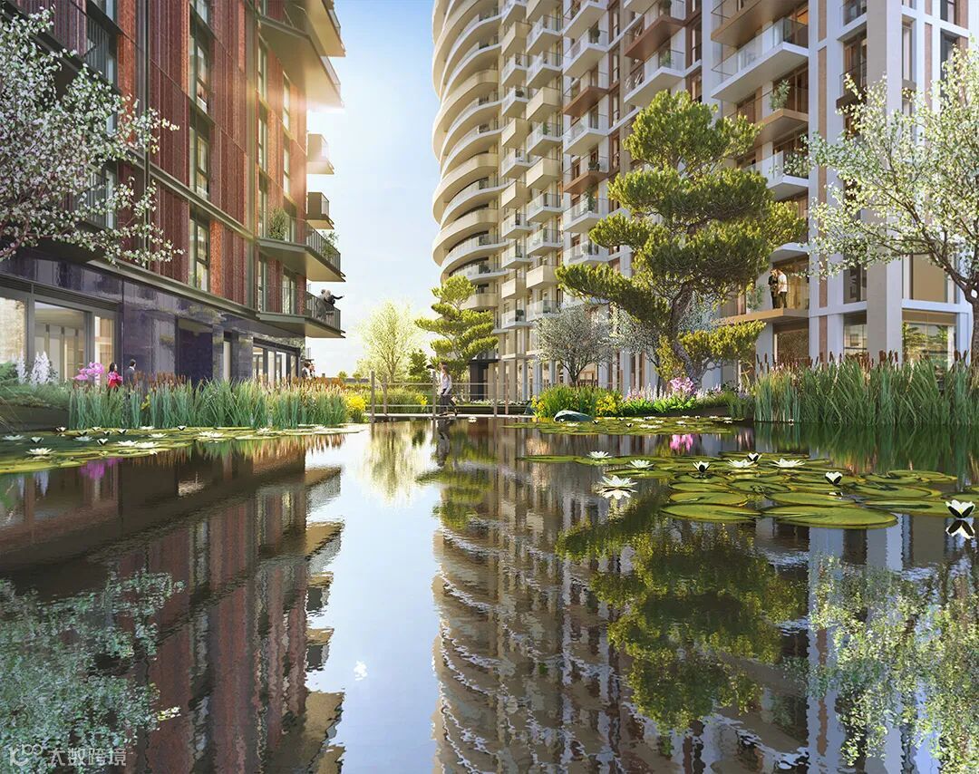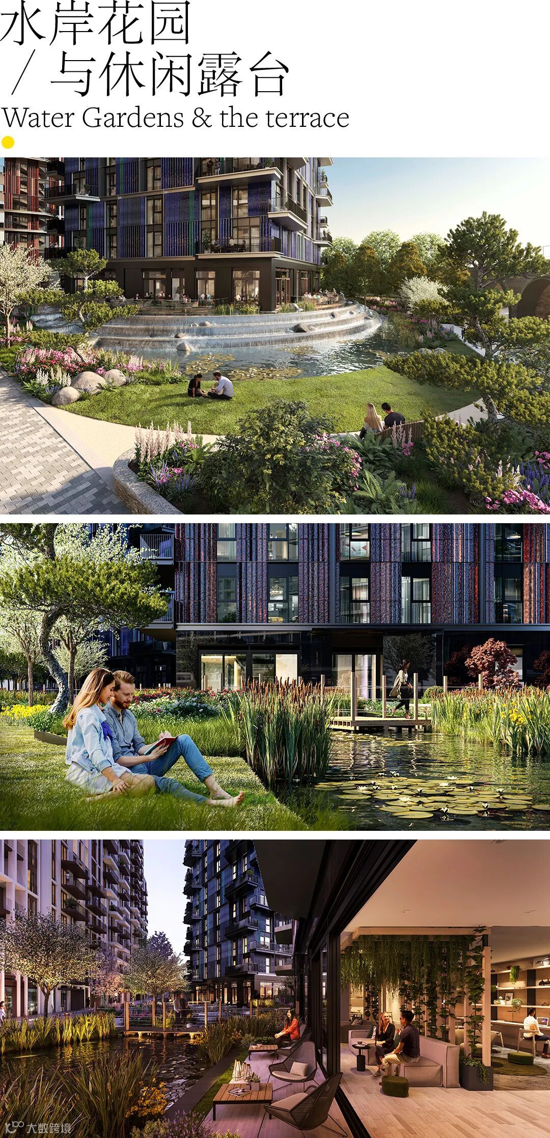 水岸花园里除了已经提到的150米层叠小瀑布,还将栽种莲花、灯芯草等大量水生或水岸植物,建成三座小桥,并提高花园内的生物多样性,成为本就在绿化方面做到极致的White City Living项目内又一奇景。