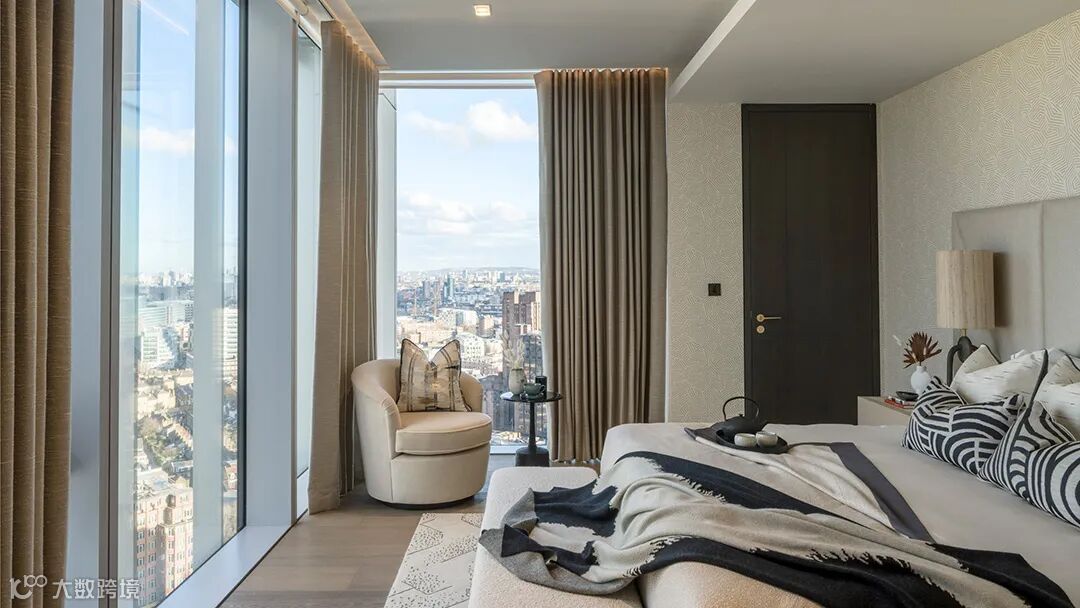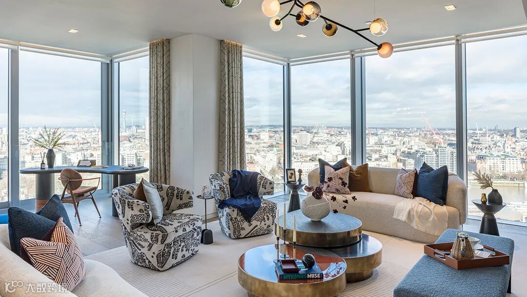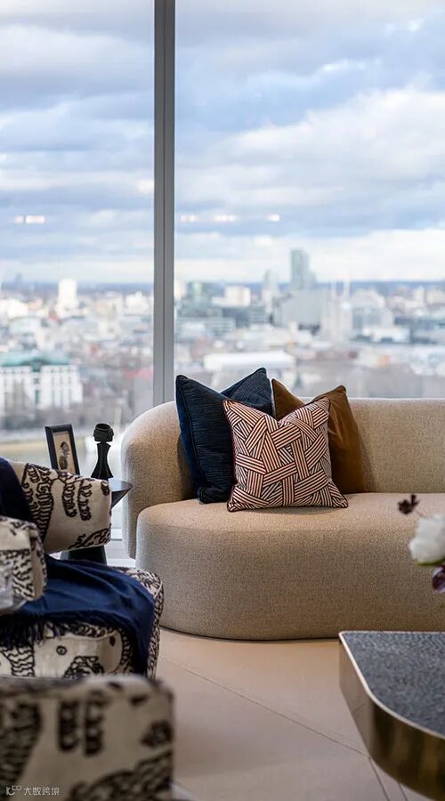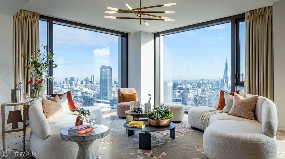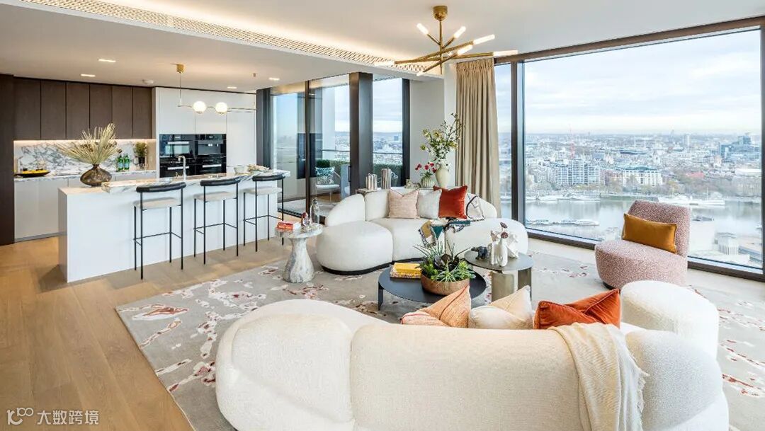 在项目内稀有在售的顶层公寓内向外瞭望,独占一层的生活,更是360度无死角将泰晤士河边的芸芸众生尽收眼底(后文更多顶层公寓豪华内景,等您探索)▼