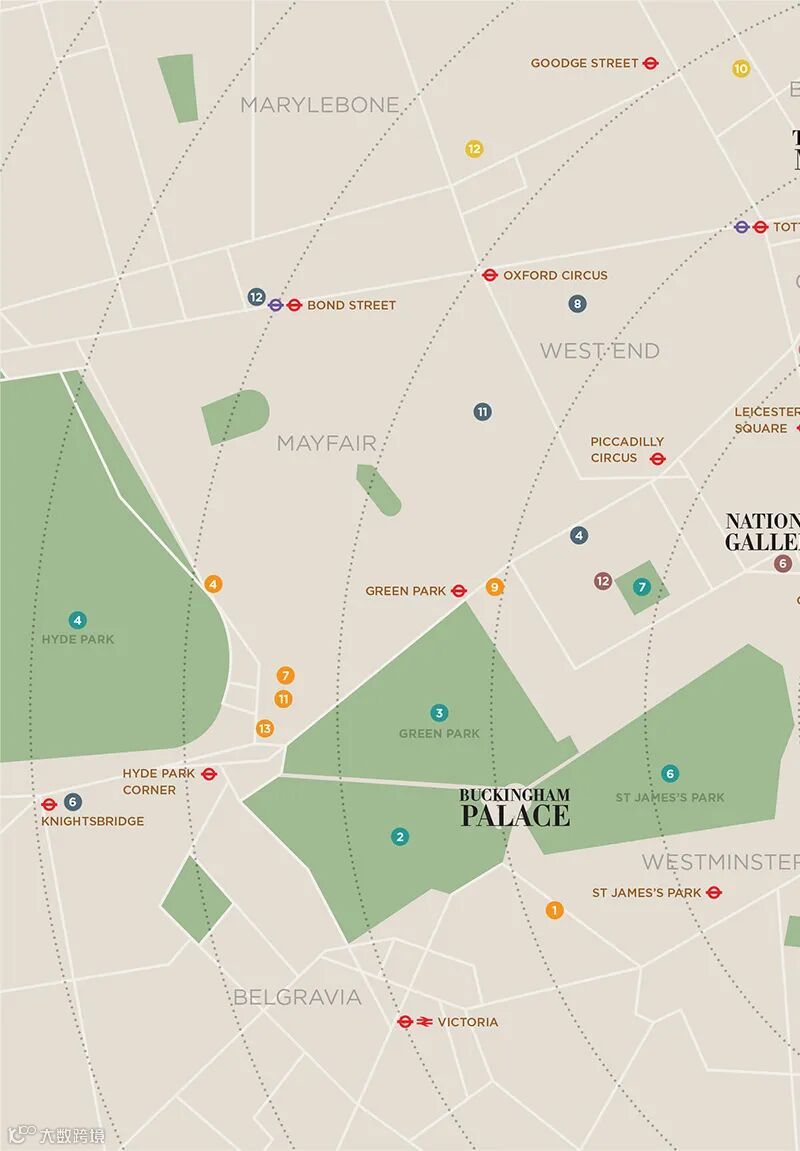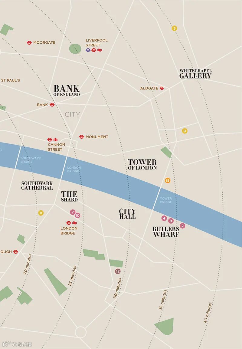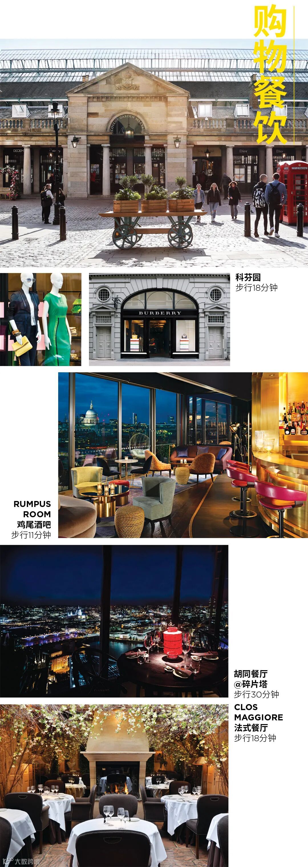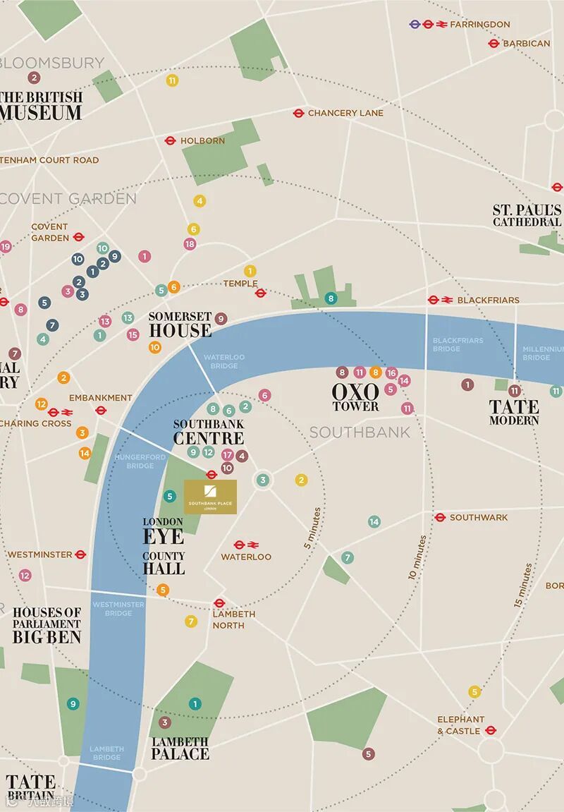 15分钟内,购物胜地邦德街、骑士桥,金融重镇金融城、金丝雀码头,「老钱」富人区切尔西斯隆广场,均可快速抵达。加上短距离步行范围内的丰富市中心去处,Southbank Place的便捷程度清晰可见▼