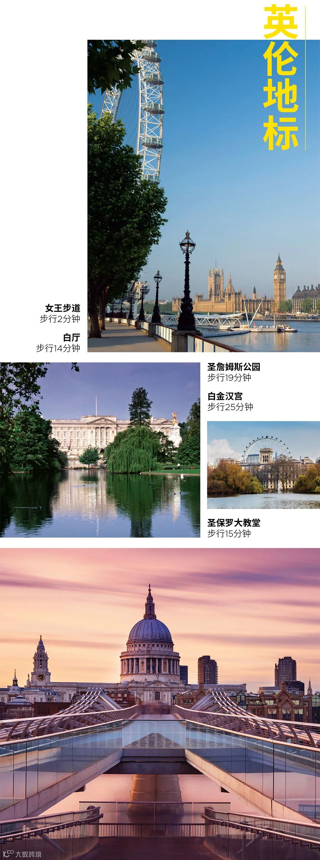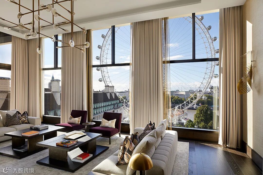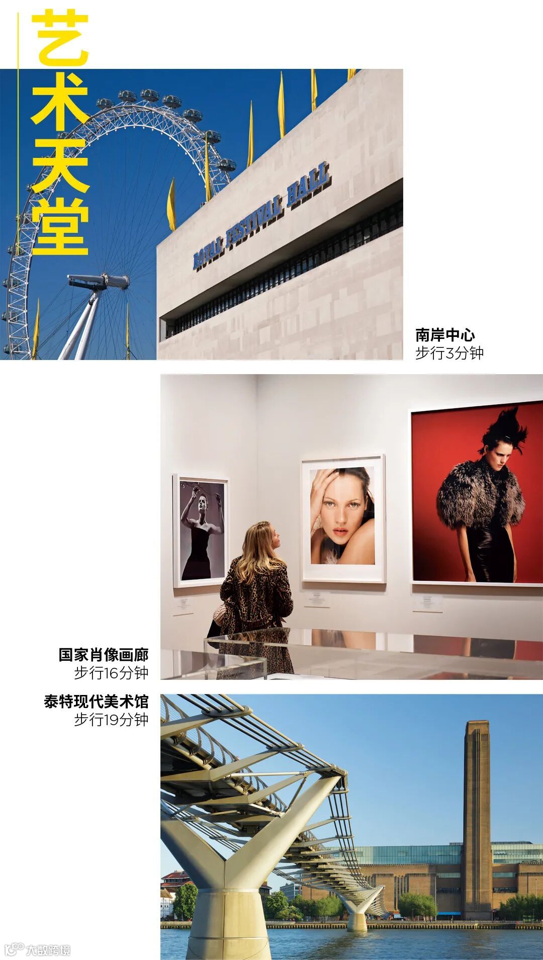 如果坐在Southbank Place顶层公寓向外瞭望,得益于伦敦眼周边仅此一家的建筑高度,这座城市的一切精彩都可以尽收眼底——向北越过伦敦眼就是大本钟、白金汉宫,西边沿泰晤士河有议会大厦,东侧金融城天际线、伦敦塔桥、碎片塔清晰可见,往南则从滑铁卢车站辐射南伦敦花样生活。