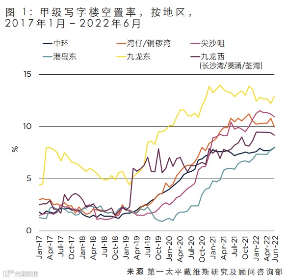 第一太平戴维斯最新发表的2022年第二季香港写字楼租赁市场报告指出,首次公开招股集资额大跌,以及持续的封关,导致中资企业的写字楼租赁需求有所放缓。