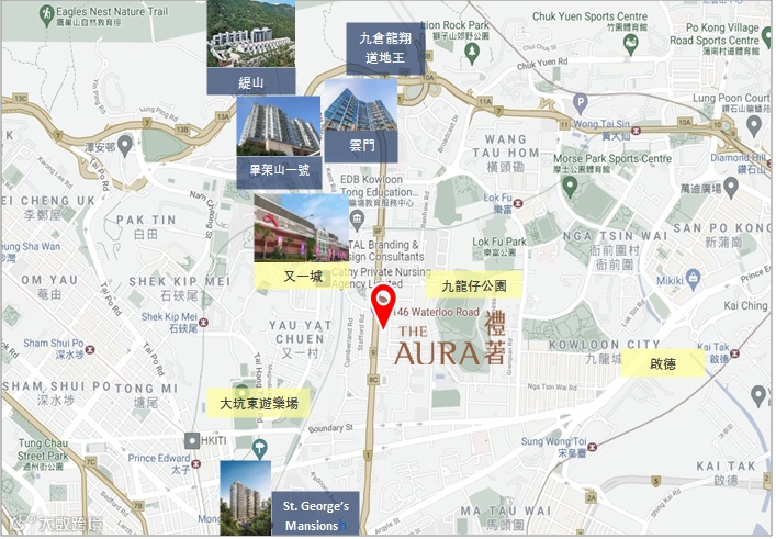 区域:九龙塘 | 街道名称及门牌号数:窝打老道146号 | 发展项目指定的互联网网站的网址:www.theaura.com.hk