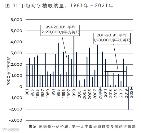 “在家工作政策及写字楼吸纳量减少,导致甲级写字楼租金在短期内可能继续下跌。”