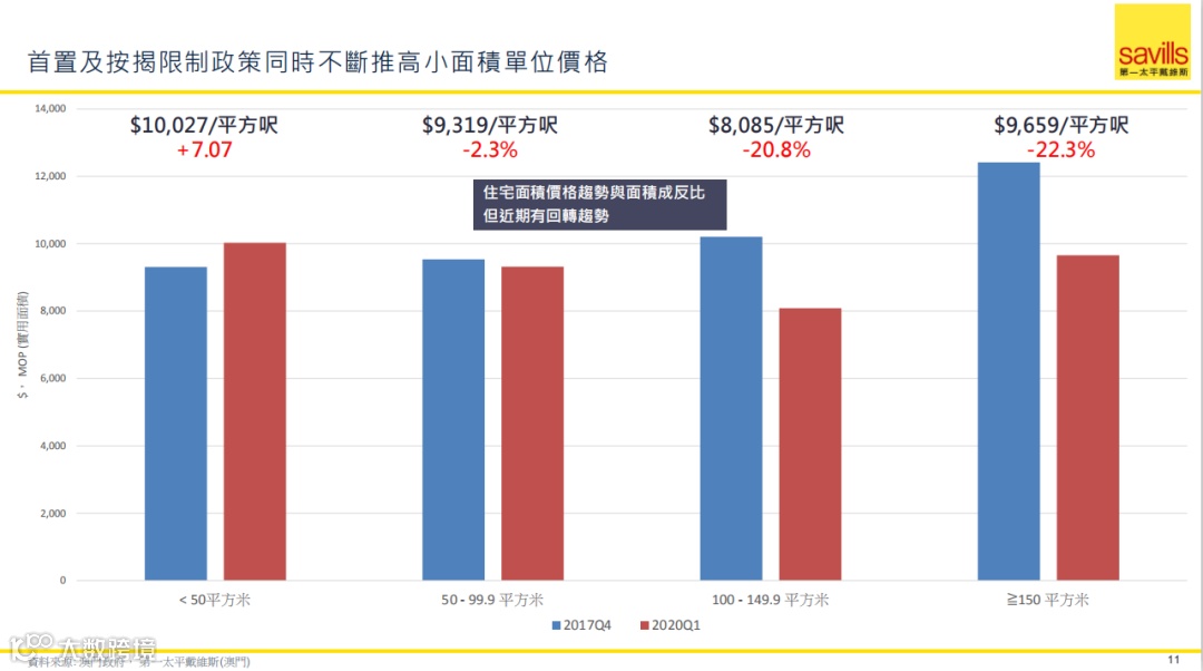 政策造成向一方倾斜的局面;研究认为政府应审视向有需要换大单位自住的市民,核实资格后放寛其按揭成数及贷款额上限,因为本澳银行在审核按揭申请时,已根据金管局之规定对申请者之供款能力及经济能力作出压力测试,理论上政府不应再额外限制有需要的自住用家;而考虑到在限制炒卖风气上,政府已设有非首置税项及卖家印花税等政策,将有实际使用需要人士及投资者分隔开,相信政策调整可令市场回复正常运作之余避免引致细价楼飙升,给予有需要人士可以购入更合适单位以改善居住环境,同时亦能促使该批人士将原来持有之800万以下单位卖出,直接令到小面积单位住宅增加供应,同时解决多个群体的需要。