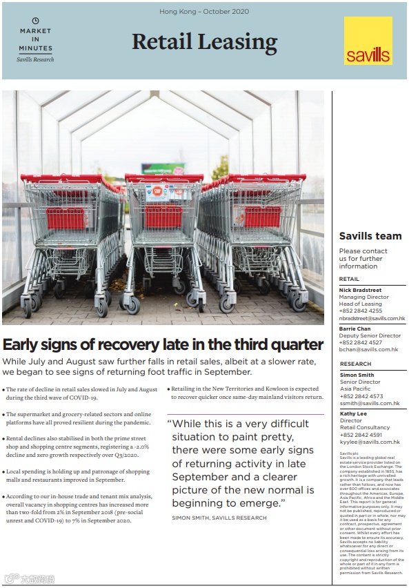 “进入疫情爆发的第9个月,我们看到了香港零售市场的诸多变化,譬如更加注重网购,采用更加灵活的租赁条款,以及更加看重生活方式,讲究物有所值。”