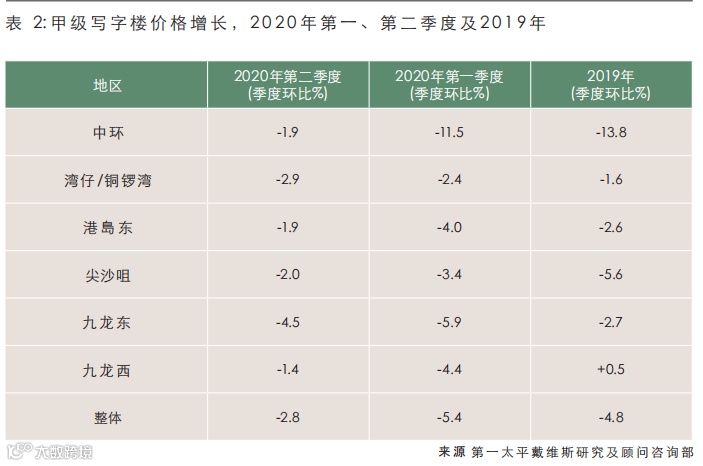 第一太平戴维斯发布第二季度写字楼及商铺投资报告指,利率持续低企(预计联储局将把利率维持在接近零的水准至2022 年)及有限的短期商业物业供应仍然是商业物业市场的两大支柱。物业供应方面,今年本港将只有两个甲级写字楼项目(合计40万呎,均位于非核心地段)及一个购物中心(The LOHAS,47万呎)落成。