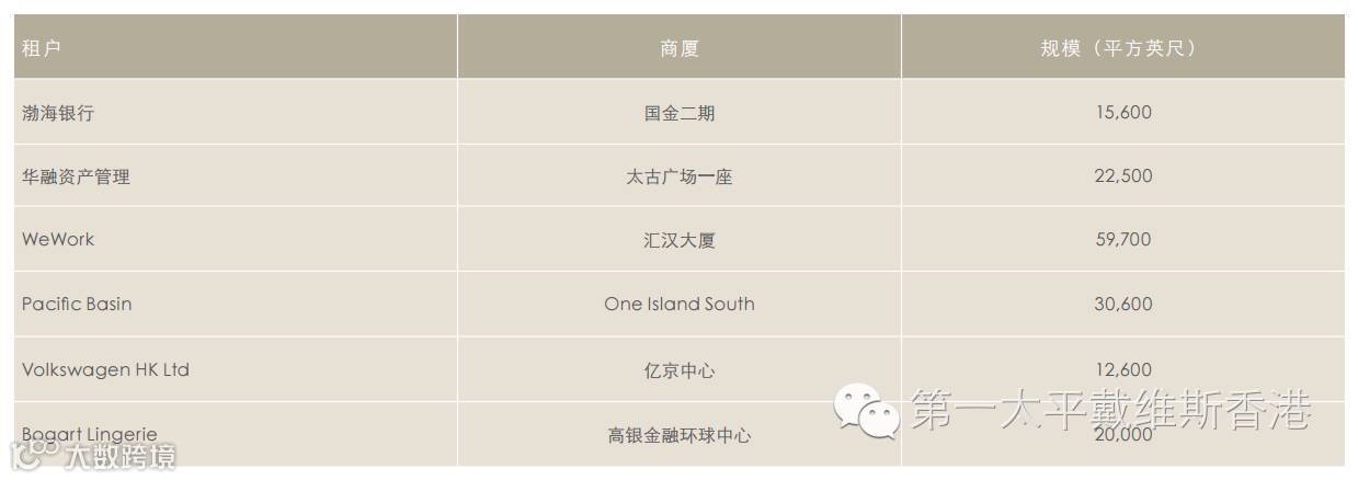 在中环,尽管需求水平低迷,但供应水平较低及可用房源有限 (9月空置率维持1.7%)有助租金持续上升。中国内资银行、证券公司及资产管理公司正在推动市场。一些租户无法承受较高租金(每平方英尺净值100港元以 上),需求外溢流入铜锣湾。