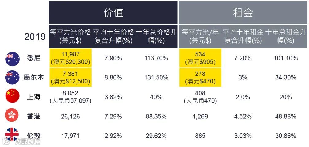 澳大利亚六个主要大城市中,悉尼是澳大利亚、乃至南半球的金融中心,墨尔本是全球最宜居城市之一,但与其他国际主要城市相比,这两地的写字楼价格处于洼地,还有长足的上升空间,因此值得投资者留意。