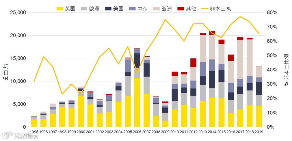 伦敦在全球金融界地位举足轻重,近年来受到了大量欧洲外投资者的青睐。自2005年开始,伦敦写字楼成为新的投资热点,安全可靠的法律、透明的市场、良好的税务环境、极强的流动性等因素,令伦敦对亚洲投资者散发出源源不断的吸引力,近年来录得多宗以中国内地及香港企业为买家的地标性成交。
