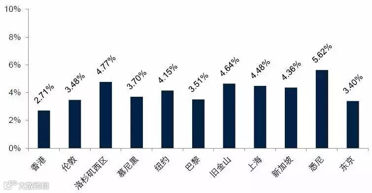 世界城市中央商务区甲级写字楼市场收益率 ,2016年6月