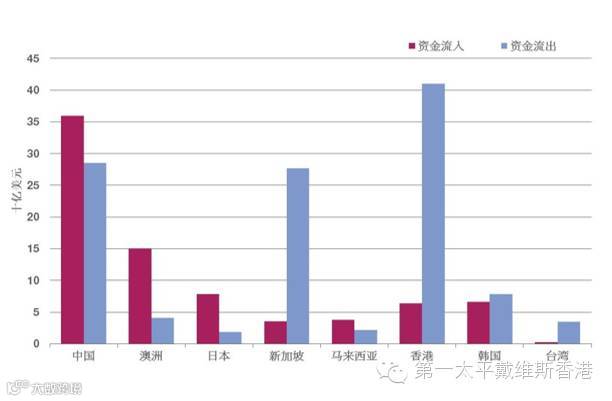 香港一向并非区内房地产市场的投资热点,2015年来自海外的房地产市场资金流入仅为63.6亿美元,于主要房地产市场中位列第五,惟香港是2015年亚洲最大的房地产市场单一资金流出地。2015年香港房地产资金流出额为410.2亿美元,较主要竞争市场中国内地高出近125.1亿美元,资金流出大部分来自在中国内地拥有业务的本地上市中资公司,新加坡也面临同样情况。此外,香港待售土地有限缺乏投资机遇,而且楼价下滑及政府规管严格也是导致资金流向海外市场的原因。