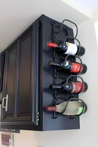 像这样在吊柜上添加摆红酒的U型挂钩,就很能节省地方。
