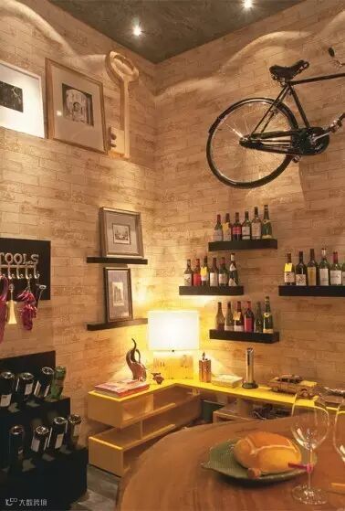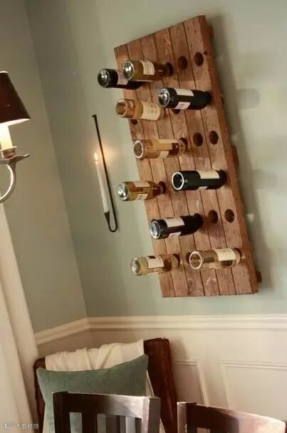 像这种由木板做成的红酒架,除了可以展示你最爱的藏酒,还可以为客厅增加不少艺术气氛呢!