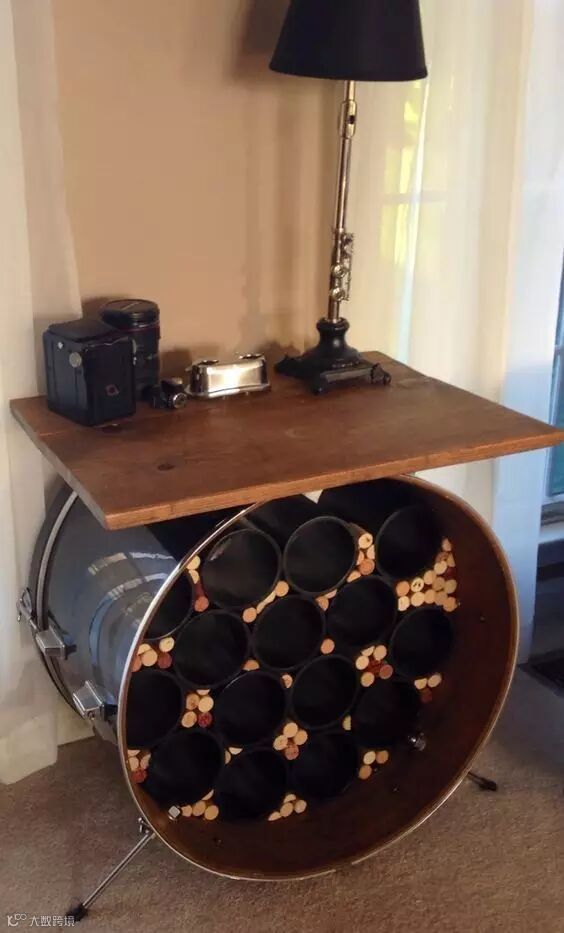 若家里有废旧的架子鼓,与其浪费在杂物间,不如将它改造成一个帅气的酒架。