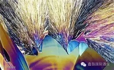 大家在酒瓶里最常见的剩余沉淀物便是酒石,这是葡萄酒中的酒石酸在较低的温度下结晶的结果。这类结晶在温度较低时会缓慢析出,但不会随着温度的回升而溶解,因此很容易保留下来,在显微镜下更显色彩斑斓。