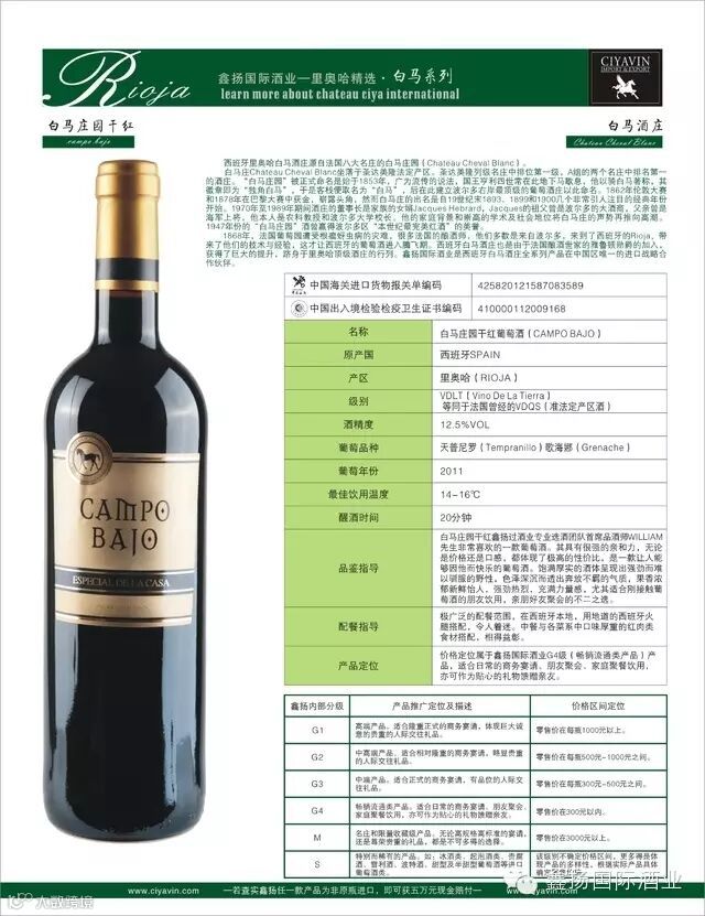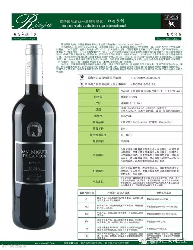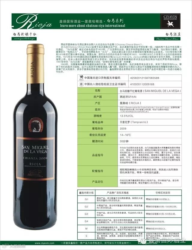 1、白马庄园干红葡萄酒