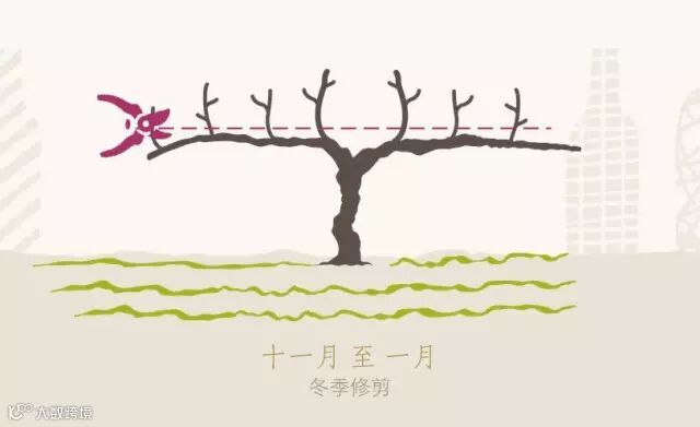 寒冬将至,葡萄树的叶片凋零。叶落之后,酿酒师开始对葡萄树进行冬季修剪,这个过程从十一月中旬开始,长达两到三个月,取决于葡萄树的长势。有时修剪时间会开始得更晚,这样便需要酿酒师更加迅速地完成修剪。