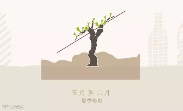 天气渐暖,又到了夏季修剪的时节。与冬季修剪不同,夏季修剪的目的是减少过多的嫩芽,并修正树形,防止长成的枝条使葡萄树负重过大。酿酒师对葡萄树进行摘芽,并按需求修整树形,固定在葡萄架上。这一过程需要眼疾手快,因为在葡萄树长势最旺的时候,枝条每天甚至能够生长5到15厘米。