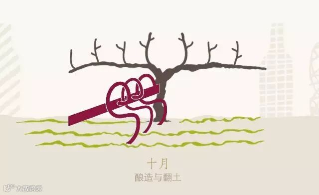 与此同时,葡萄园内开始翻土。由于先前葡萄树在成熟期吸收了土壤内一切利于生长的营养成分,酿酒师需要一边翻土,一边在土壤中添加有机肥料等物质,以增加土壤的肥力,并提高抵御病虫害的能力。酿酒师将园内行间的泥土移到葡萄树下,帮助其抵抗冬季的霜冻。