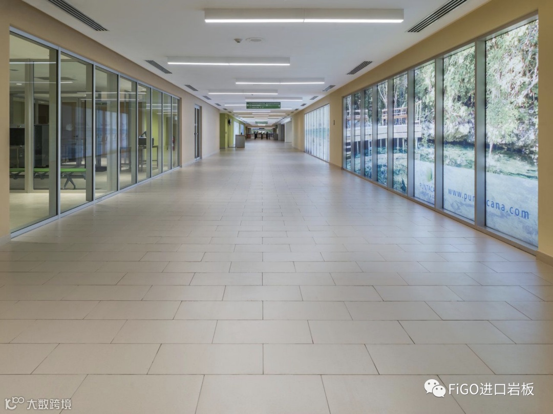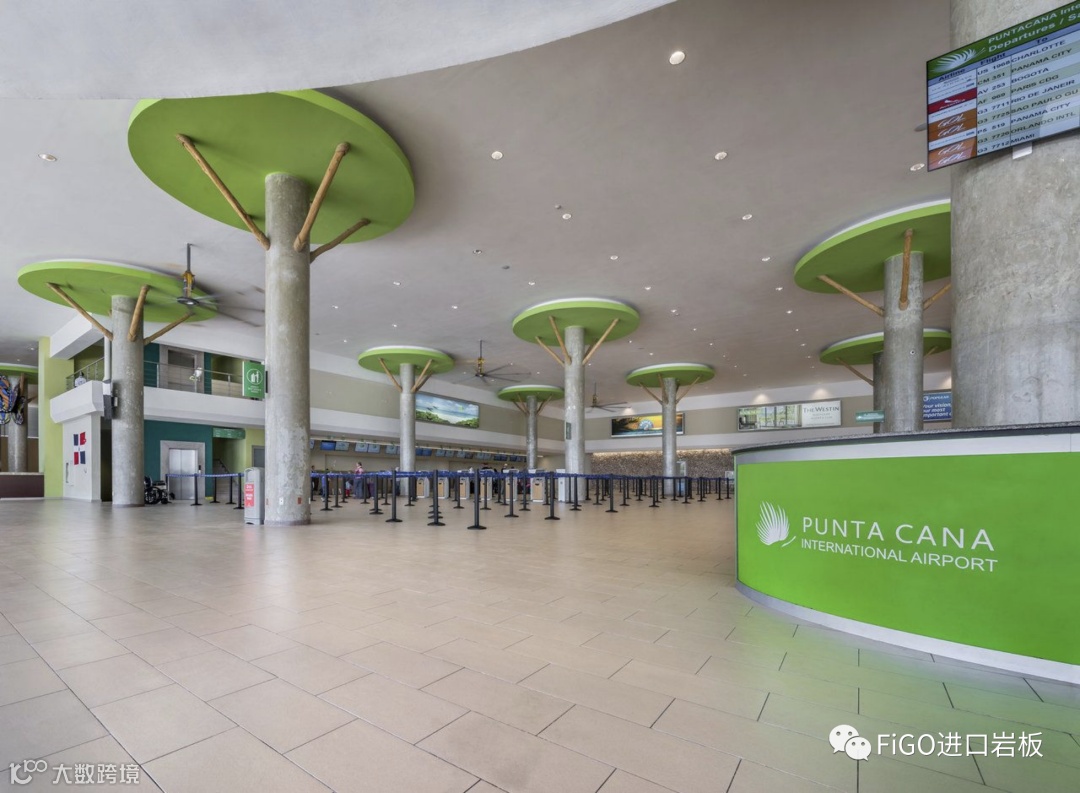 2015年,机场内部进行了大规模的翻新工程。作为加勒比海岛国的机场,在设计上亦充满了岛国风情。设计师特意选用了Porcelaingres的Just Beige瓷砖,淡黄色泽使室内洋溢着暖意,也让进入机场的旅客仿如脚踏细沙,与航站楼顶的棕榈树叶内外呼应 、相映成趣,纵然置身机场都能提前感受阳光海滩与椰林树影的摄人魅力。