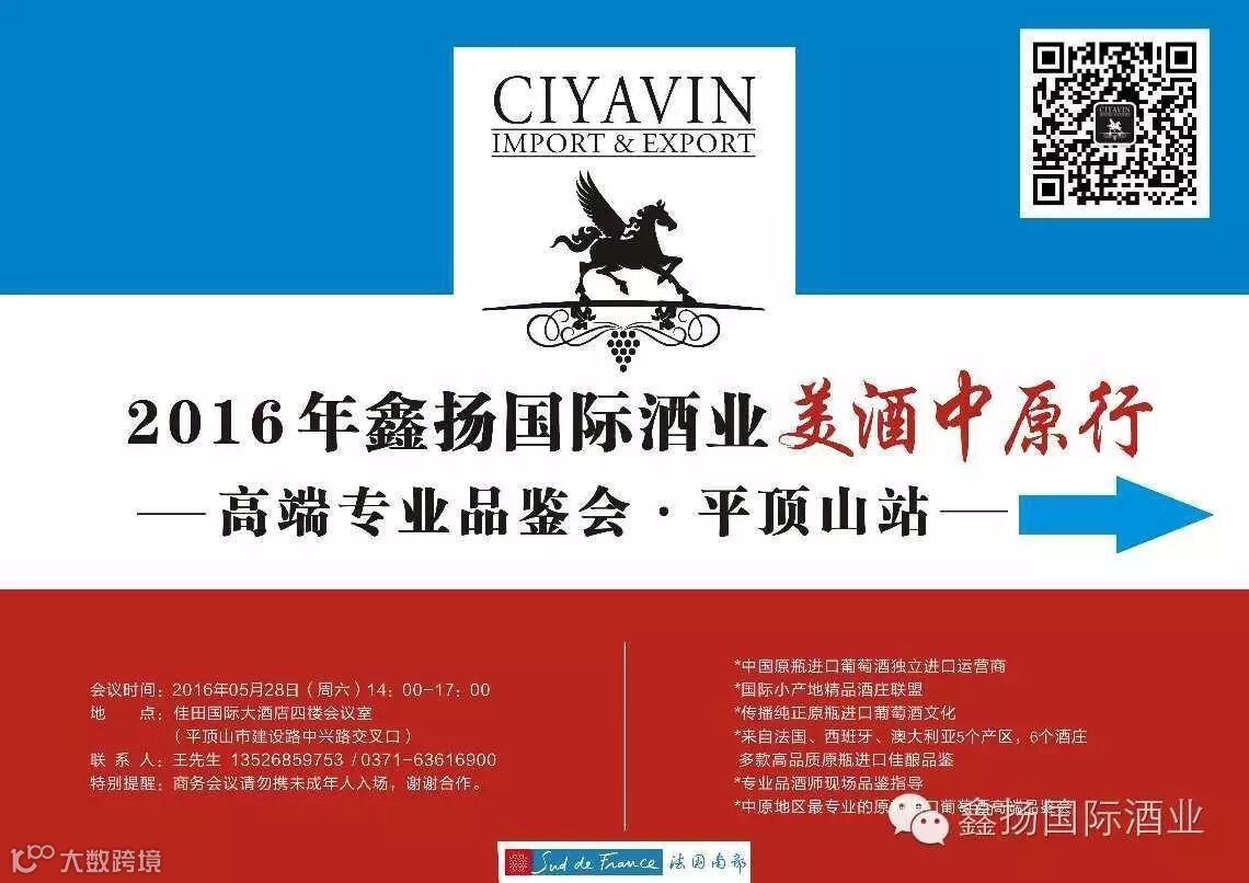 此次美酒中原行高端品鉴会到达平顶山市,将于2016年5月28日(本周六)于平顶山市佳田国际大酒店隆重举行,期待您的到来!