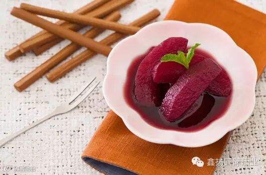 功效:法式红酒炖雪梨,有温暖肠胃,润肺止咳的功效。
