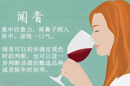 闻香是品酒的一大乐趣。在闻香前,可以深呼吸一口气,再将鼻子靠近或者探入杯中吸气。需要注意的是,在此过程中,你只需短促地嗅几下,而非长吸。此外,闻香时应保持注意力集中,才能尽可能地捕捉更多的香气。