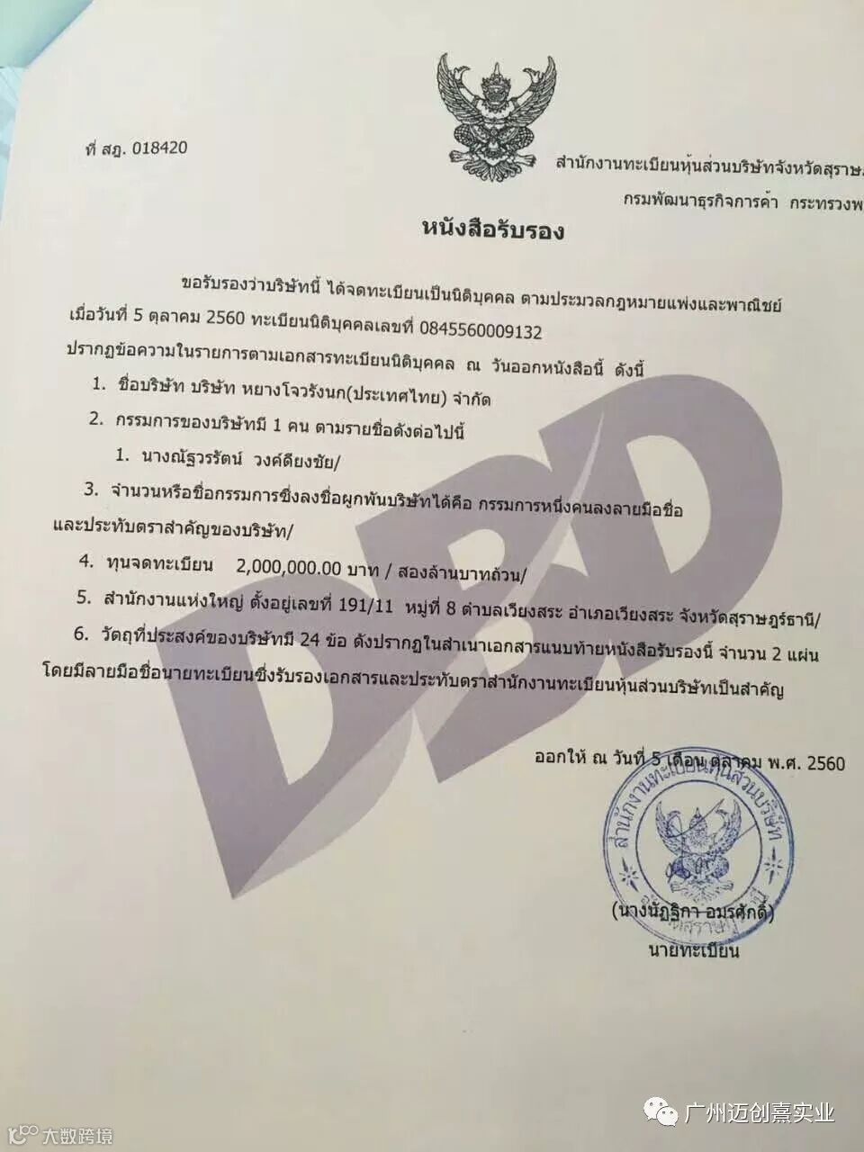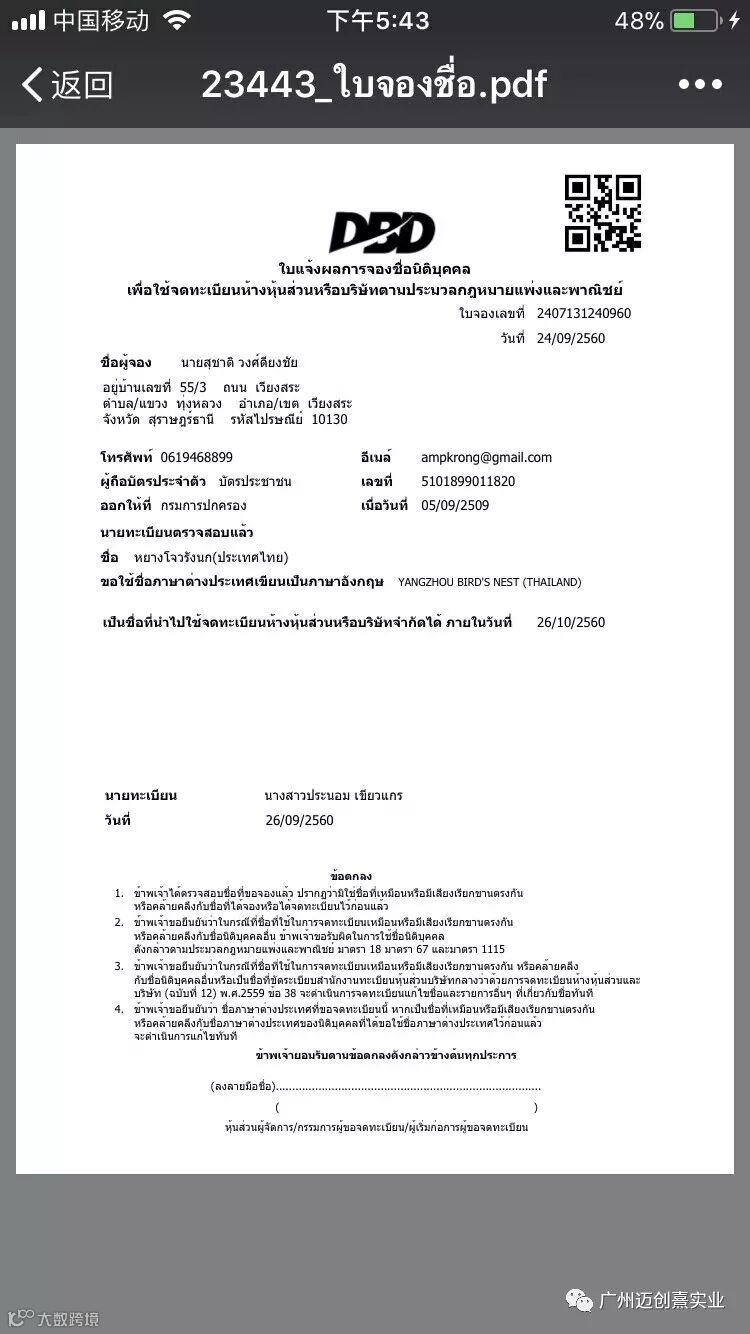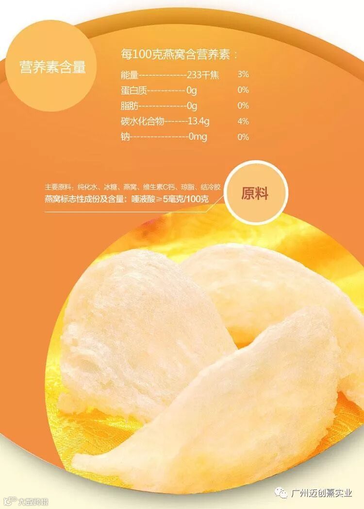我们在泰国注册公司叫阳洲燕窝,在国内就以迈创熹实业公司作为统筹销售。