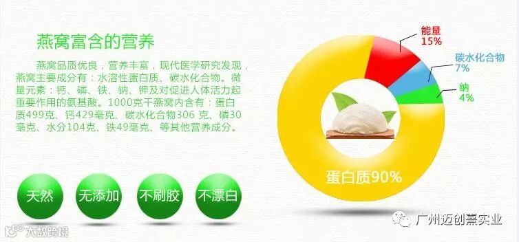 迈创熹出品的燕窝品质承诺:绿色环保采摘、古法手工清洗、科学合法进口,源于自然,诚于品质。无污染、无漂白、无涂胶、无增重、发头大、3次纯手工挑毛,无任何化学成分,保持原汁原味全天然优良品质。 100%纯正泰国自有基地(看得见的放心,吃的起的保证!)天然优质头期极品轻毛壮年雨燕,色泽天然、盏型完美、干度优良、纤维细密、口感爽滑。遵循古法手工艺,坚守传统高标准品质。