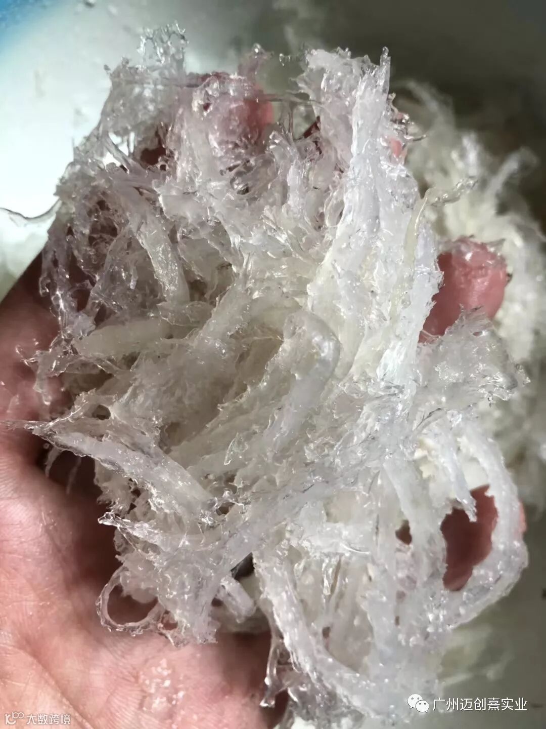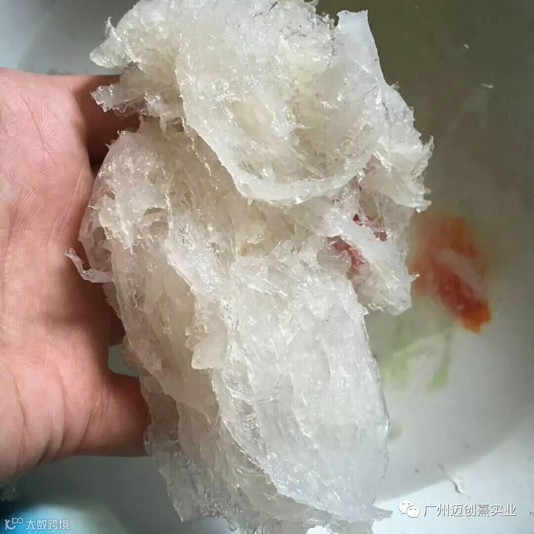 3.真正的燕窝煮后形状呈丝条状,长短粗细不一或结块状且不规则